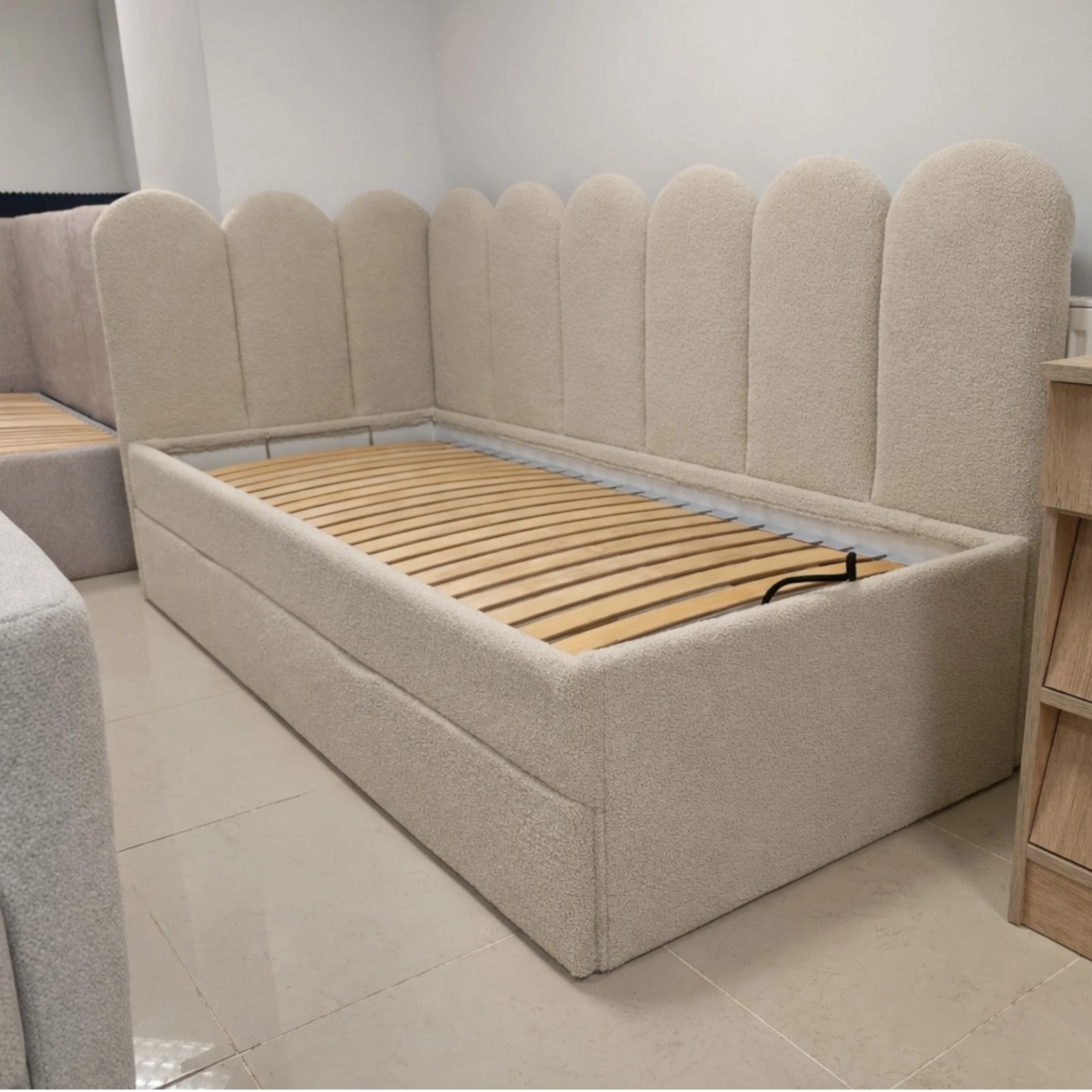 Łóżko Zoe z szufladą lewe wymiary 80x190cm tkanina Lambi 05 (2000zł) + materac piankowy HR35 - wysokosprężysty , podwójnie spieniany (600zł)